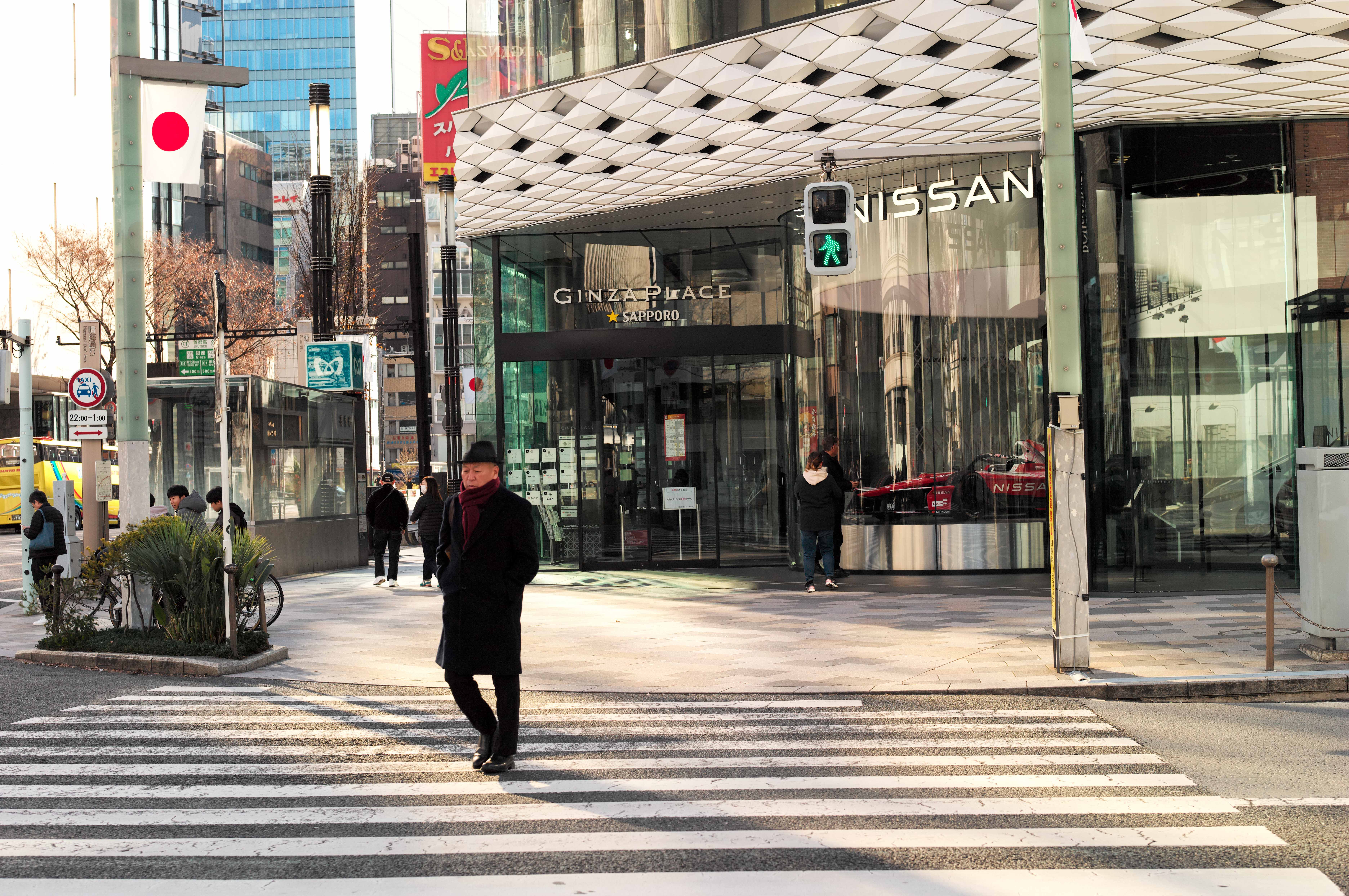 Ginza’s Nissan showroom projects the brand at its strongest. My only night with a woman in my student days was a trip to an Izu hot spring in a Nissan—though there were three of us.