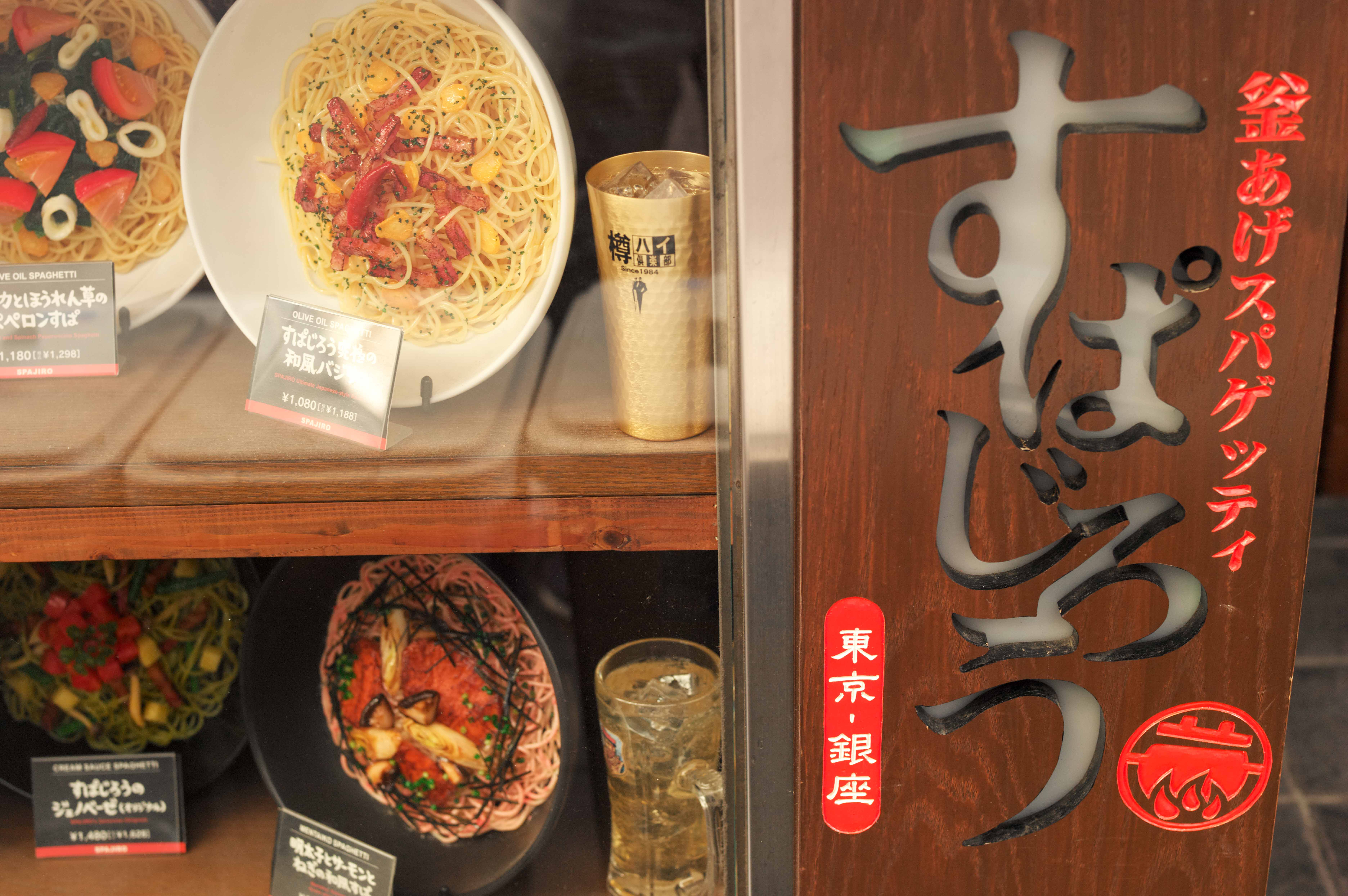 I had long wanted to capture the food samples in this showroom window, and finally succeeded—thanks to a rare moment when the street was nearly empty.