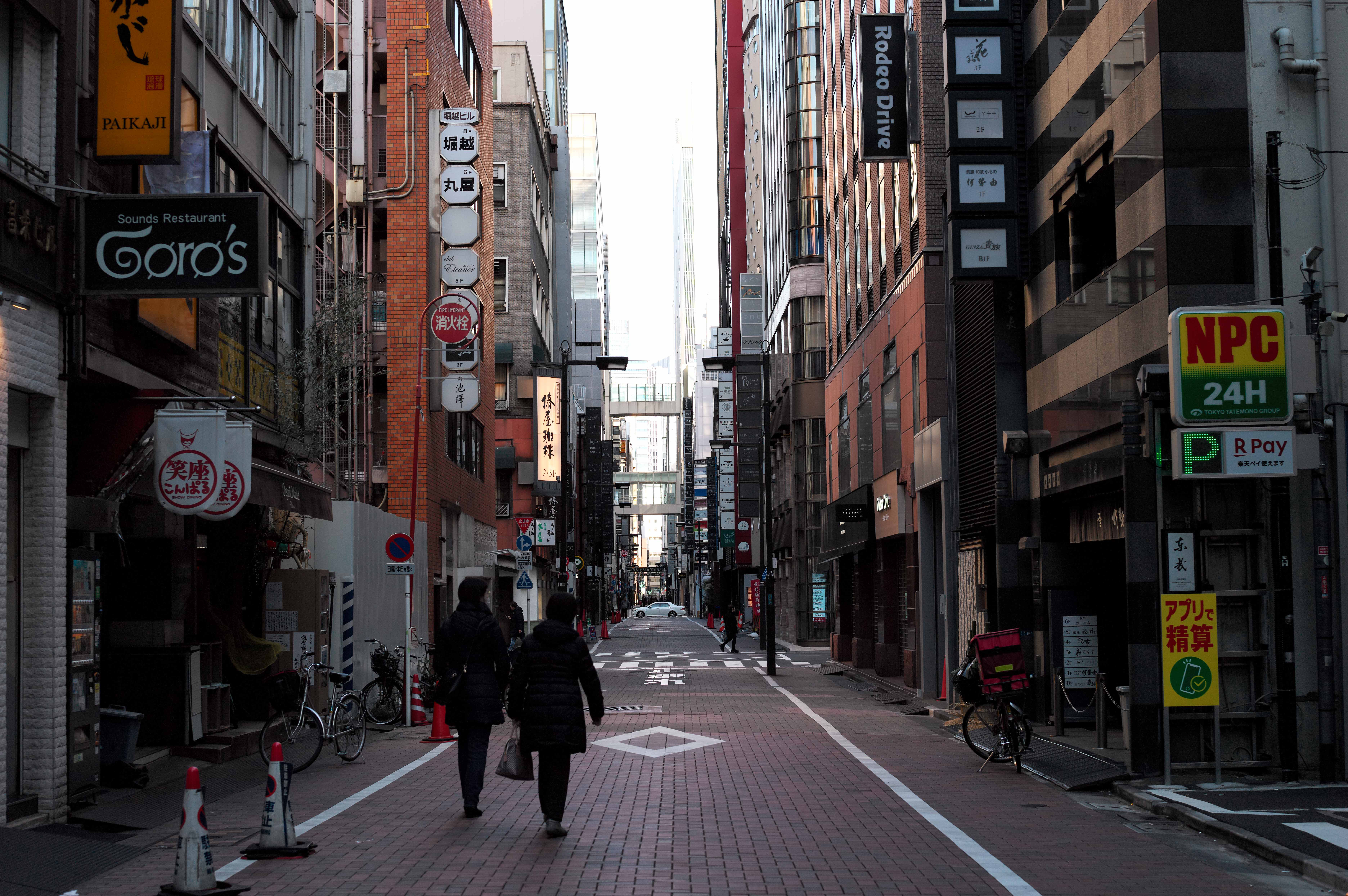 A blonde beauty sharpens the stillness of Suzuran Street on New Year’s Day, while behind her runs a Toyota classic known only to true enthusiasts.