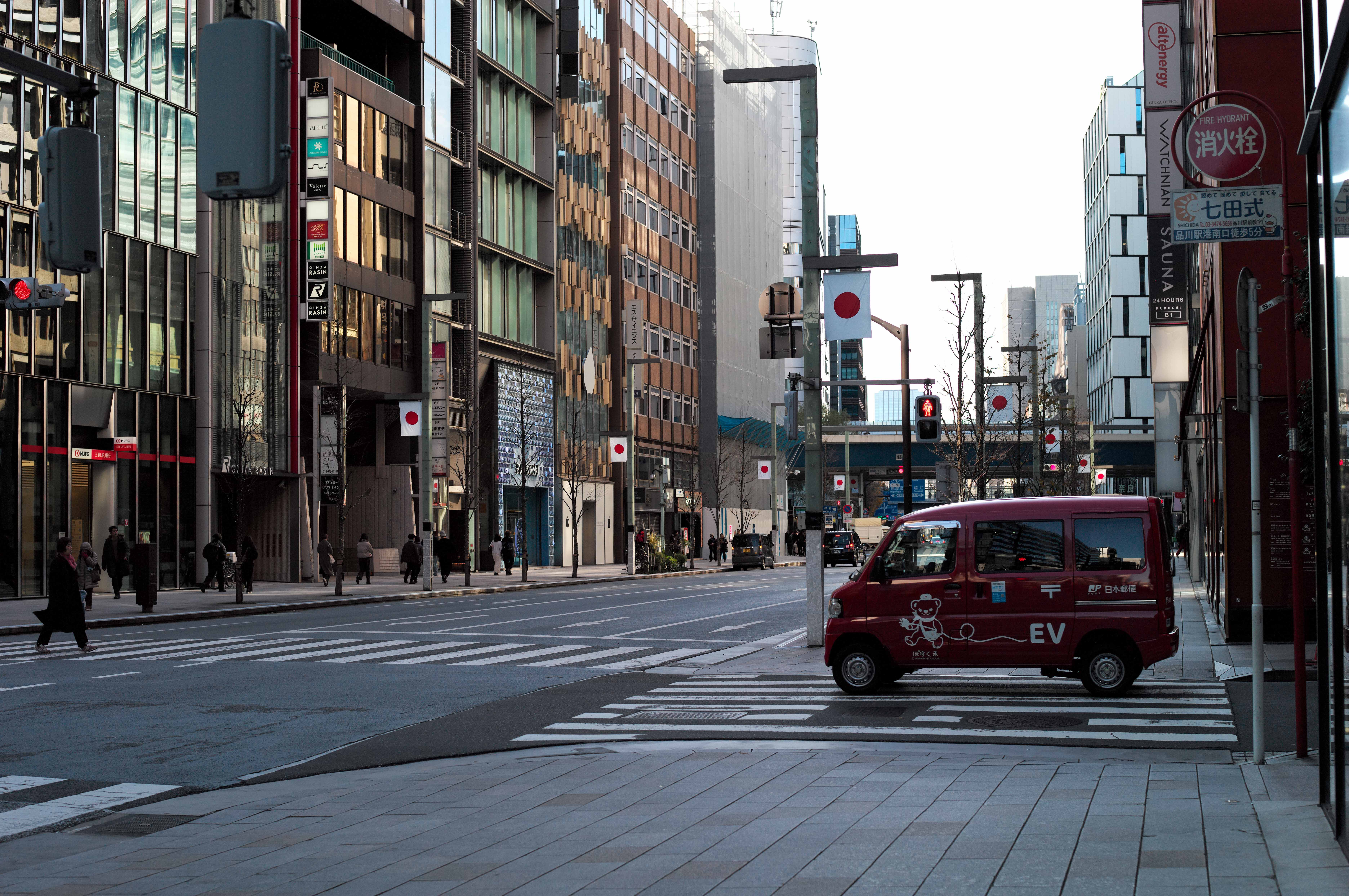 どんな急な出現でも撮り切る力こそ写真の神とのリンク。郵便局のEVカーを、運命の一撃で最高の瞬間に捉えた。